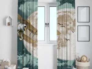 Geceyi Aydınlatan Uçan Balonlar ve Retro Uçaklar Fon Perde