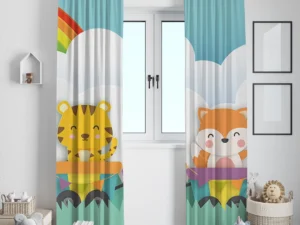 Gökkuşağı Altında Neşeli Hayvanlar Treni Fon Perde