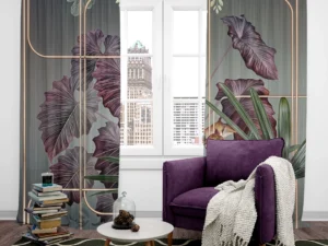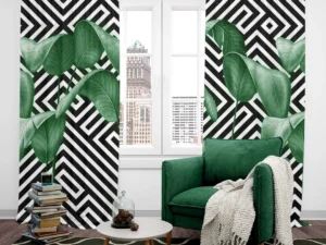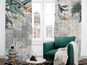 Lüks Geometrik Desenlerle Buluşan Tropik Doğa Fon Perde