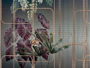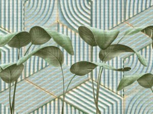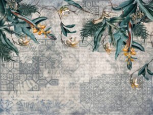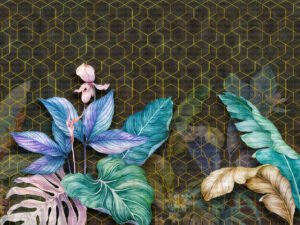 Lüks Geometrik Desenlerle Buluşan Tropik Doğa Fon Perde