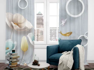 Bu büyüleyici tasarım, suyun dinginliğini ve çiçeklerin zarafetini bir araya getiriyor. Zarif balıklar ve narin çiçekler, izleyiciye huzur dolu bir atmosfer sunuyor. Pastel renkler ve akıcı çizgiler, mekanlara sakinlik ...