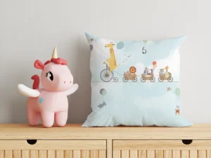 Gökyüzünde Pedal Çeviren Neşeli Zürafa ve Sihirli Treniyle Tatlı Bir Macera Kırlent