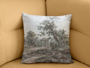 Antik Köprülerin Üzerinde Yükselen Tapınak Manzarası Kırlent