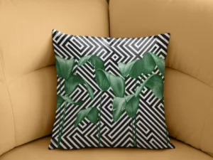 Lüks Geometrik Desenlerle Buluşan Tropik Doğa Kırlent
