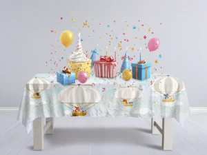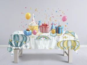 Balonlarla Uçan Filler ve Tavşanların Masalsı Dünyası Masa Örtüsü
