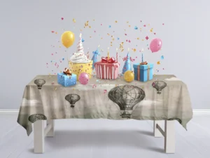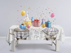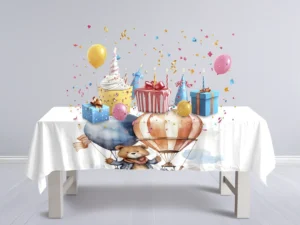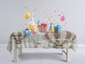 Balonla Gökyüzünde Fil ve Zürafa Macerası Masa Örtüsü