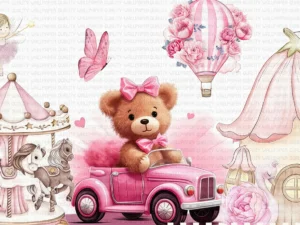 Arabadaki Sevimli Dostlar Zürafa Fil Ayı ve Panda Masa Örtüsü
