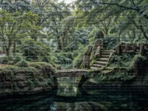 Kadim Taş Köprülerin Fısıltısıyla Yeşilin Büyülü Dansı Masa Örtüsü