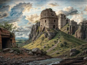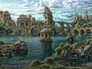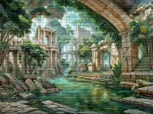 Kayıp Bir Uygarlığın Fısıltılarıyla Yıkanan Antik Kent Masa Örtüsü