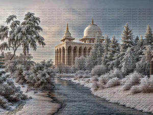 Kış Masalının Beyaz Örtüsüyle Sarılı Bir Tapınak Masa Örtüsü