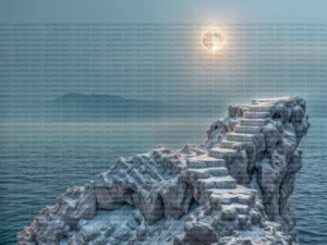Ay Işığında Parıldayan Kayalık Merdivenlerin Sonsuzluğa Uzanan Yolu Masa Örtüsü