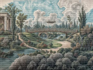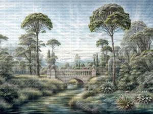 Çam ve Selvi Ağaçlarının Gölgesinde Yükselen Antik Köprü Masa Örtüsü
