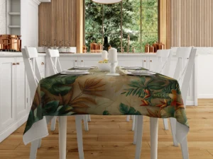 Kabartma Sanatıyla Tropik Yaprakların Huzur Veren Dansı Masa Örtüsü