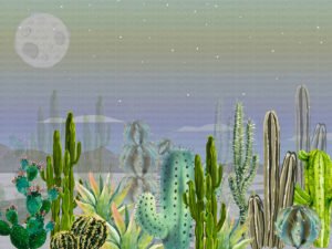 Kaktüslerin Ay Işığında Büyüsü Masa Örtüsü