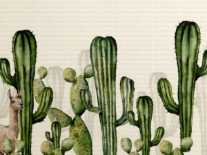 Tropik Kaktüsler ve Lama Dostluğu Masa Örtüsü