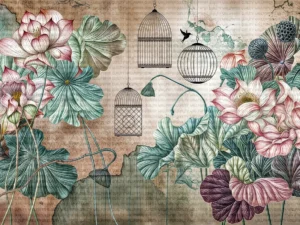 Kuşların Şarkısıyla Dans Eden Lotus Çiçekleri Masa Örtüsü