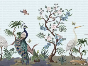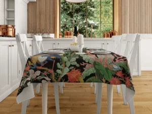 Tropikal Çiçekler ve Egzotik Zarif Kuşlar Masa Örtüsü