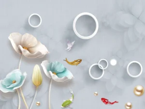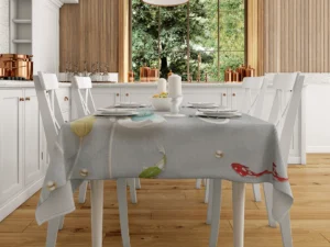Suyun Zarafetiyle Buluşan Çiçekler ve Balıklar Masa Örtüsü