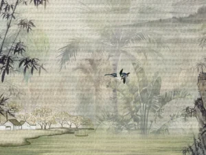 Uzakdoğu’nun Gizemli Bahçesinde Zarif Çiçekler ve Kuşlar Masa Örtüsü