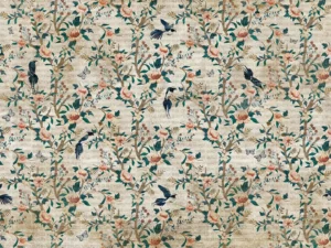 Vintage Çiçekler Kuşlar ve Kelebeklerle Bezenmiş Nostaljik Bahçe Masa Örtüsü