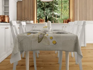 Zarif Çiçekler ve Uçan Kelebekler Masa Örtüsü