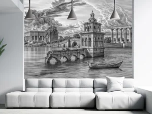 Antik Suyun Üzerinde Yükselen Klasik Mimari Poster Duvar Kağıdı