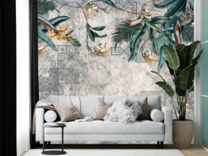 Lüks Geometrik Desenlerle Buluşan Tropik Doğa Poster Duvar Kağıdı