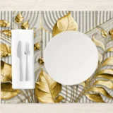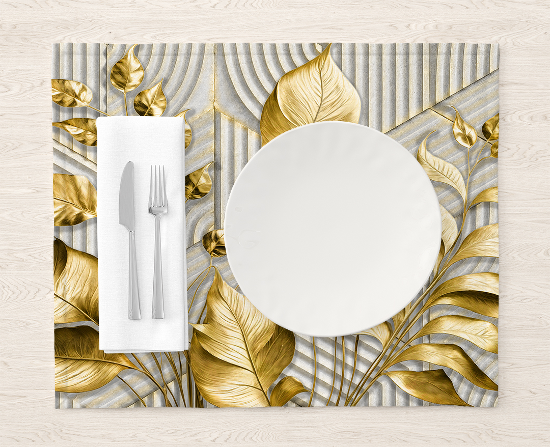Bu tasarım, altın yaprakların zarafetini ve ışıltısını modern bir yorumla sunuyor. Geometrik desenler ve altın tonlarının uyumu, mekana lüks ve sofistike bir hava katıyor. Bu eser, geçmişin ihtişamını günümüze taşıyarak, mekanlara zamansız bir güzellik ve zenginlik hissi veriyor.