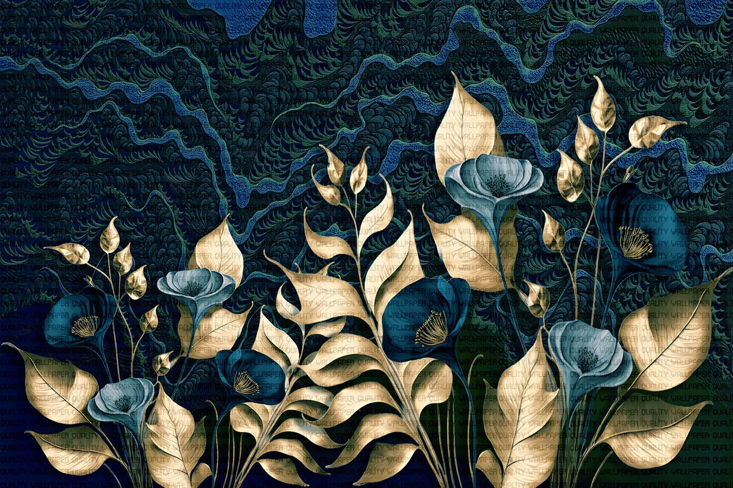 Bu büyüleyici tasarım, koyu renklerin derinliğini altın ışıltısıyla buluşturarak lüks ve zarafetin eşsiz bir dansını sunuyor. Her bir çiçek ve yaprak, altın dokunuşlarla zenginleştirilerek mekana sofistike ve göz alıcı bir hava katıyor. Bu sanat eseri, mekanlarına lüks ve zarafet katmak isteyenler için mükemmel bir seçimdir.