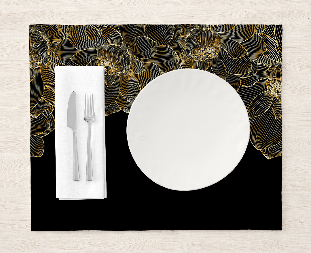 Bu büyüleyici tasarım, siyahın asaletiyle altın ışıltısının zarafetini bir araya getirerek mekanlara lüks ve görkemli bir hava katıyor. Her bir çiçek, altın kontürlerle vurgulanarak sofistike ve göz alıcı bir etki yaratıyor. Bu sanat eseri, mekanlarına zenginlik ve şıklık katmak isteyenler için mükemmel bir seçimdir.