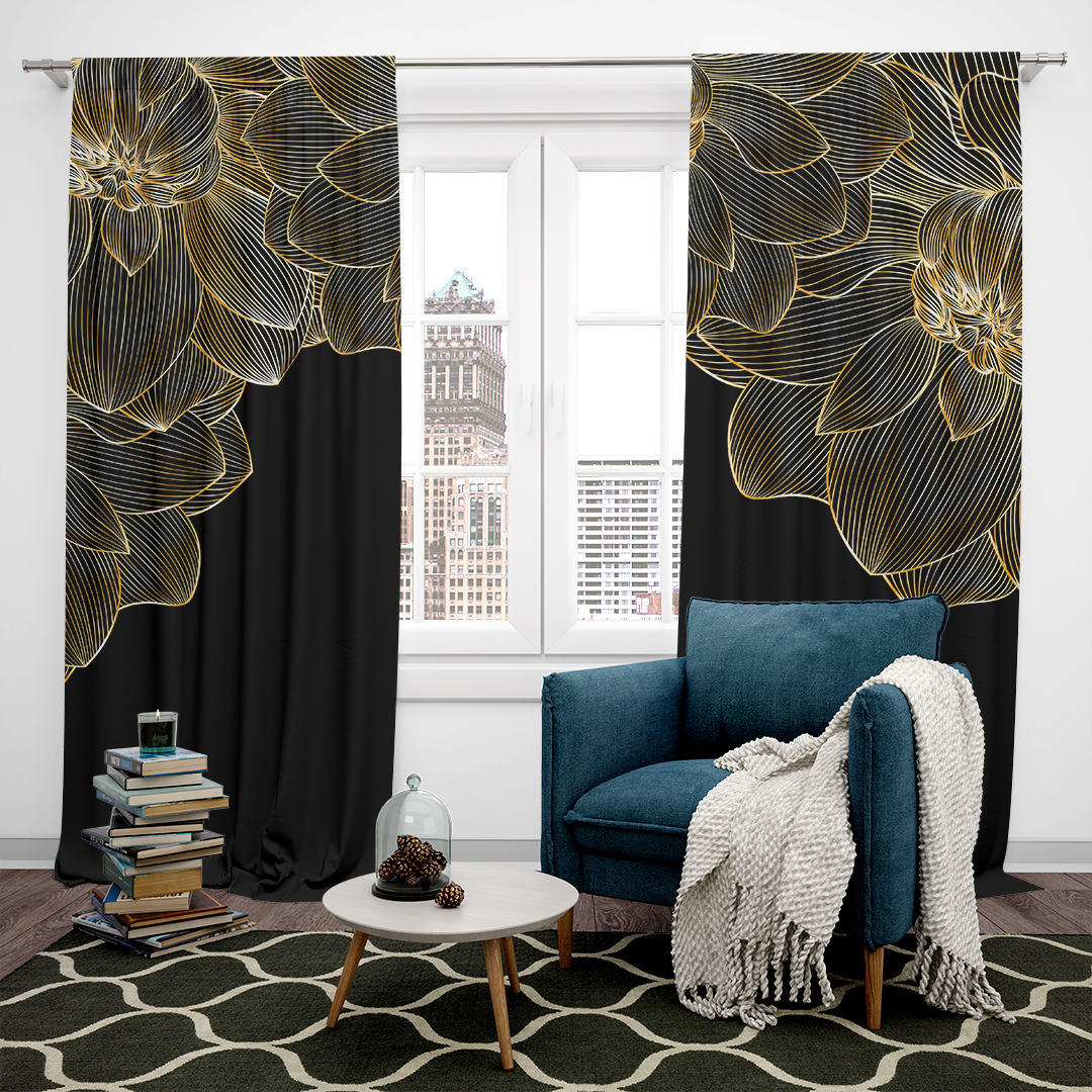 Bu büyüleyici tasarım, siyahın asaletiyle altın ışıltısının zarafetini bir araya getirerek mekanlara lüks ve görkemli bir hava katıyor. Her bir çiçek, altın kontürlerle vurgulanarak sofistike ve göz alıcı bir etki yaratıyor. Bu sanat eseri, mekanlarına zenginlik ve şıklık katmak isteyenler için mükemmel bir seçimdir.