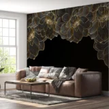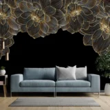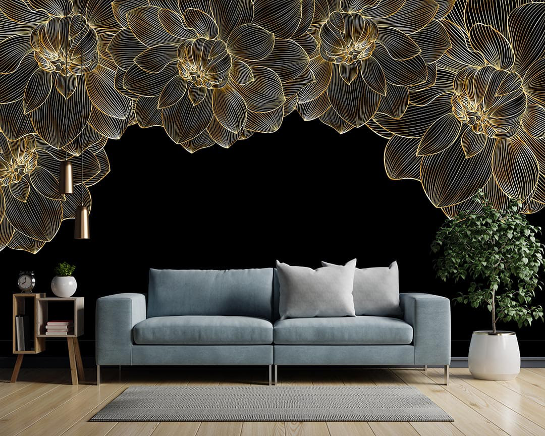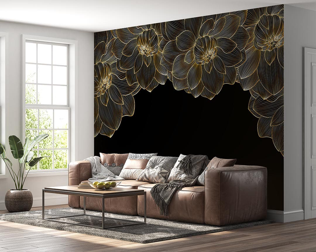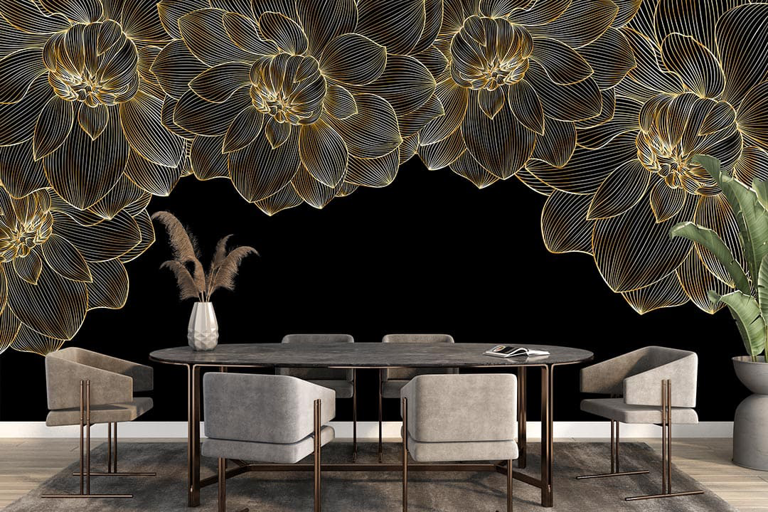 Bu büyüleyici tasarım, siyahın asaletiyle altın ışıltısının zarafetini bir araya getirerek mekanlara lüks ve görkemli bir hava katıyor. Her bir çiçek, altın kontürlerle vurgulanarak sofistike ve göz alıcı bir etki yaratıyor. Bu sanat eseri, mekanlarına zenginlik ve şıklık katmak isteyenler için mükemmel bir seçimdir.