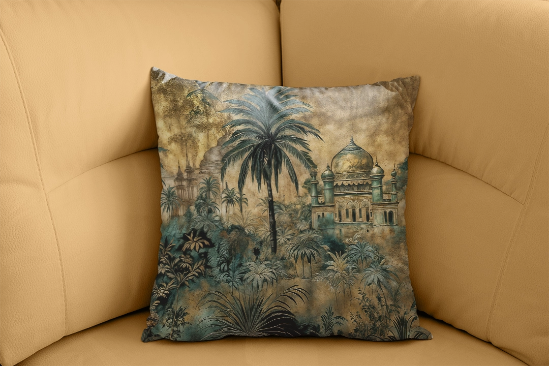 Bu tasarım, tropik bir tapınağın altın mozaikleriyle süslü antik yapısını ve onu çevreleyen yemyeşil doğayı resmediyor. Tapınağın gizemli cazibesi ve doğanın canlılığı, izleyiciye egzotik bir atmosfer ve zamansız bir güzellik sunuyor. Bu eser, farklı kültürlerin ve doğanın uyumunu yansıtarak, mekanlara derinlik ve büyüleyici bir hava katıyor.