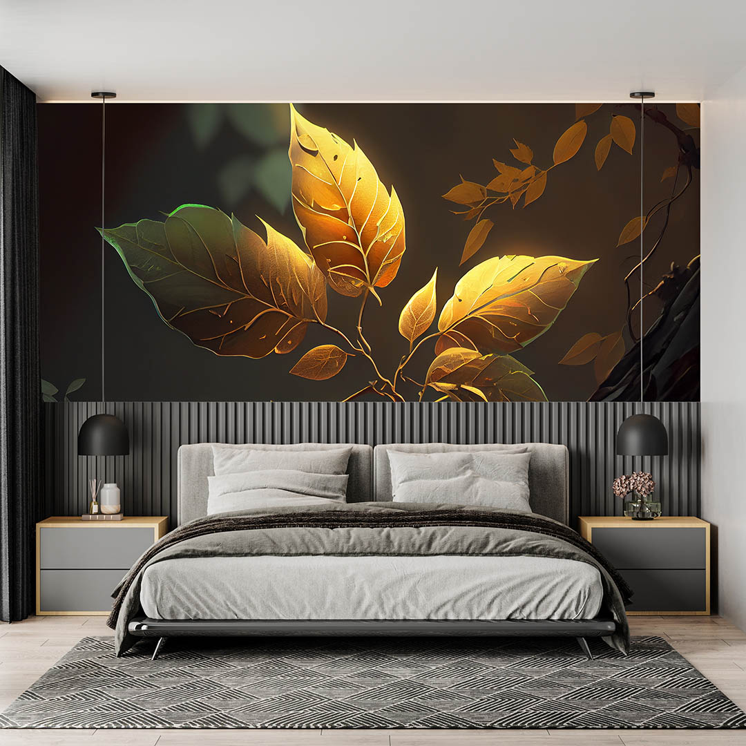 Bu tasarım, altın yaprakların mistik ve büyüleyici güzelliğini yansıtıyor. Yaprakların zarif kıvrımları ve sıcak tonları, izleyicilere huzur ve hayranlık duygusu veriyor. Bu eser, doğanın büyüsünü ve zarafetini modern bir yorumla sunarak, mekanlara sofistike bir dokunuş katmak isteyenler için tasarlandı.