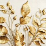 Bu tasarım, altın yaprakların zarif ve büyüleyici dansını yansıtıyor. Işıltılı dokular ve sıcak renkler, mekanlara lüks ve sofistike bir hava katıyor. Yaprakların kıvrımlı hatları ve gölgeleri, derinlik ve hareket hissi uyandırarak ortama dinamik bir zarafet taşıyor. Bu eser, modern ve şık mekanlar yaratmak isteyenler için tasarlandı.