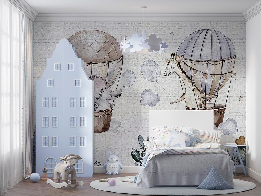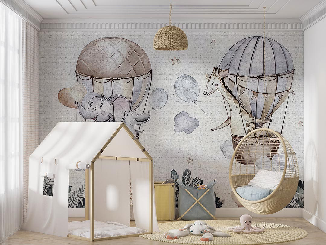 Bu sevimli görselde, rengarenk balonlarla gökyüzünde yolculuk eden bir fil ve zürafa arkadaşlığı resmediliyor. Fırça darbeleriyle oluşturulan yumuşak dokular ve canlı renkler, neşeli ve sıcak bir atmosfer yaratıyor. Filin meraklı bakışları ve zürafanın heyecanı, izleyiciyi bu keyifli maceraya davet ediyor. Bu eser, dostluğun, keşfetmenin ve birlikte hayal kurmanın güzelliğini kutluyor. İzleyene tatlı bir gülümseme ve huzur dolu bir his veriyor.