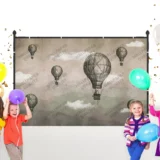 Bu tasarım, geçmişin izlerini taşıyan sıcak hava balonlarını, zamansız bir atmosferde sunuyor. Soluk renkler ve detaylı çizimler, nostaljik bir hava yaratırken, balonların gökyüzündeki dansı, hayallerin peşinden gitme duygusunu simgeliyor. Bu görsel, izleyicisine huzur ve nostalji aşılıyor, onları geçmişe doğru tatlı bir yolculuğa çıkarıyor.