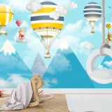 Bu sevimli görselde, rengarenk balonlarla gökyüzünde uçan ayılar, masalsı bir dünyaya davet ediyor. Fırça darbeleriyle oluşturulan yumuşak dokular ve pastel tonlar, huzurlu ve keyifli bir atmosfer yaratıyor. Uçan ayılar ve balonlar, hayal gücünün sınırlarını zorlayan bir yolculuğu simgeliyor. Bu eser, izleyene çocuksu neşeyi, hayal kurmanın önemini ve içimizdeki sevimli çocuğu hatırlatıyor.