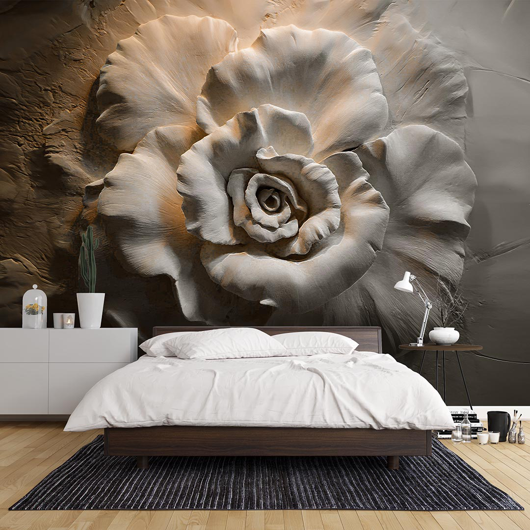 Bu büyüleyici tasarım, bej tonlarının sıcaklığı ve huzuruyla 3D kabartma gül motifinin zamansız zarafetini bir araya getiriyor. Her bir yaprak ve kıvrım, ışık ve gölgeyle dans ederek mekana derinlik ve doku katıyor. Bu özel tasarım, modern ve klasik unsurları harmanlayarak izleyicisine sıcak, şık ve davetkar bir atmosfer sunuyor.