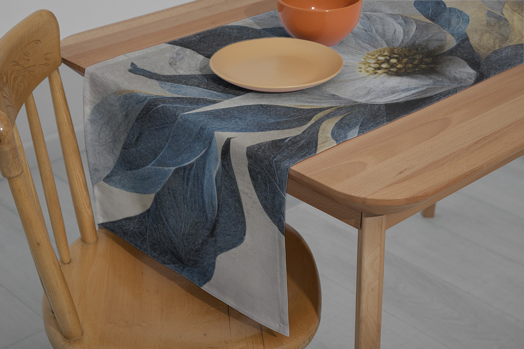 Be the first to review “Beyaz Soft Mavi Yapraklı Çiçeğin Zarafeti Runner”