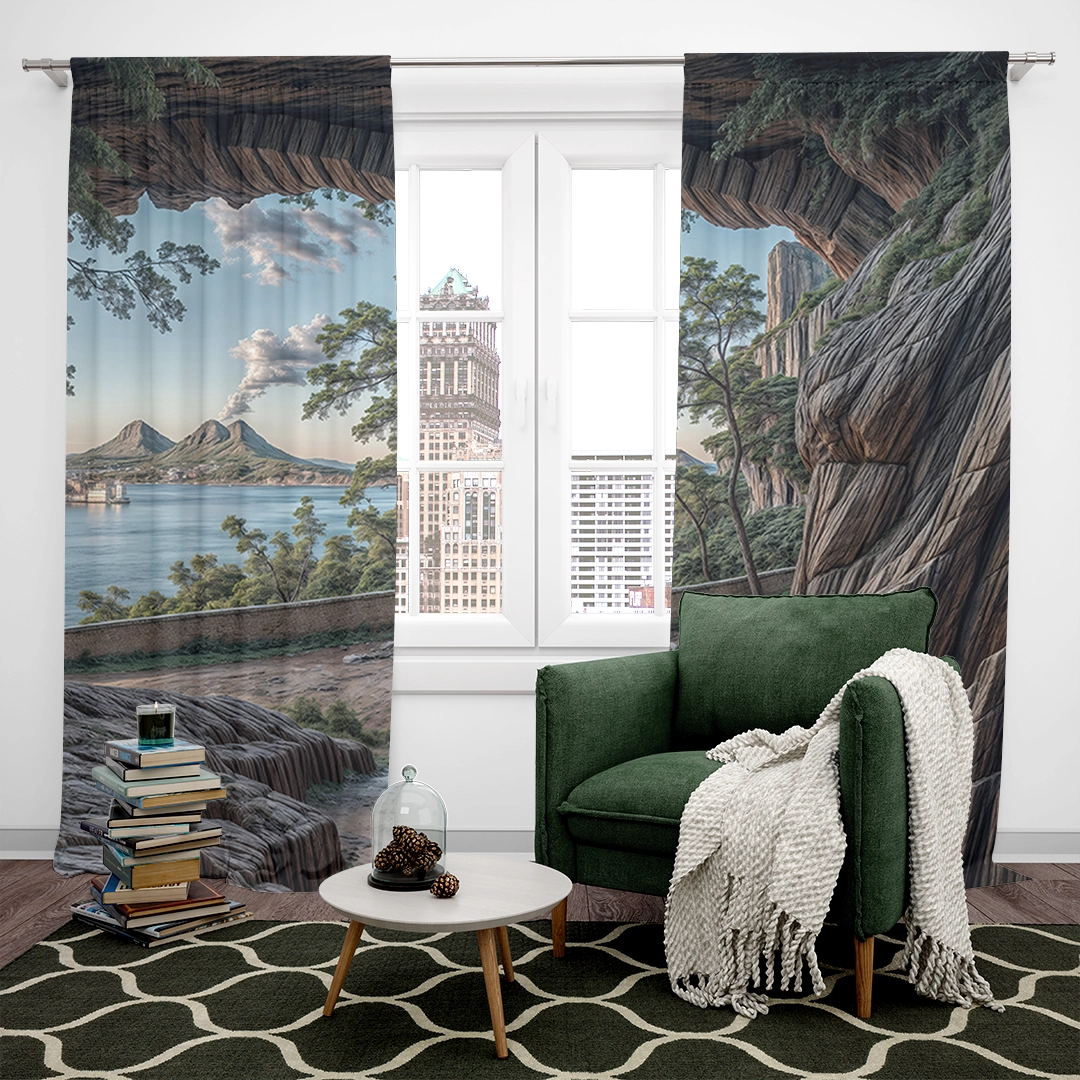 Bu tasarım, William Shakespeare’in “Bir Yaz Gecesi Rüyası” adlı eserinden ilham alan, gizemli bir geçidin ve dingin bir göl manzarasının büyüleyici atmosferini fırça darbeleriyle gözler önüne seriyor. Kadim ağaçların ve devasa taş oluşumlarının oluşturduğu doğal kemer, izleyiciyi bilinmeyene doğru bir yolculuğa davet ederken, uzakta parıldayan göl ve dağlar, manzaraya derinlik ve doğal bir ihtişam katıyor. Her fırça darbesi, ağaçların ve taşların dokusunu, suyun dinginliğini ve ışığın gölgelerle olan oyununu vurgularken, yeşilin, kahverenginin ve mavinin zengin tonları, bu sahnenin huzurunu ve büyüsünü hissettiriyor. İzleyicide bir hayranlık, sakinlik ve keşfetme arzusu uyandırırken, aynı zamanda fantastik bir dünyanın kapılarını aralama hissini veriyor. Bu görsel, ruhu dinlendiren, hayal gücünü harekete geçiren ve sizi zamansız bir masalın içine davet eden bir kapı aralıyor.