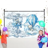 Bu sevimli görselde, bulutların üzerinde keyifli bir yolculuğa çıkan şirin ayılar resmediliyor. Pastel tonların yumuşaklığı ve bulutların hafif dokusu, izleyiciye huzurlu ve neşeli bir atmosfer sunuyor. Ayıların masumiyeti ve uçan balon ile uçaktaki maceraları, çocuksu hayallerin ve sınırsız hayal gücünün sembolü. Bu tasarım, izleyiciyi tatlı bir rüyaya davet ederek içindeki çocuğu yeniden keşfetmeye teşvik ediyor.