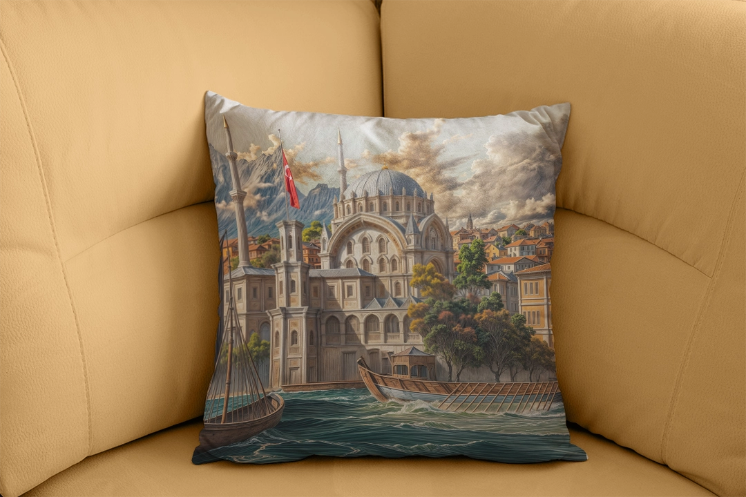 Be the first to review “Camii’nin Görkemli Silüeti Dalgalanan Denizde Süzülen Saltanat Kayıkları Kırlent”