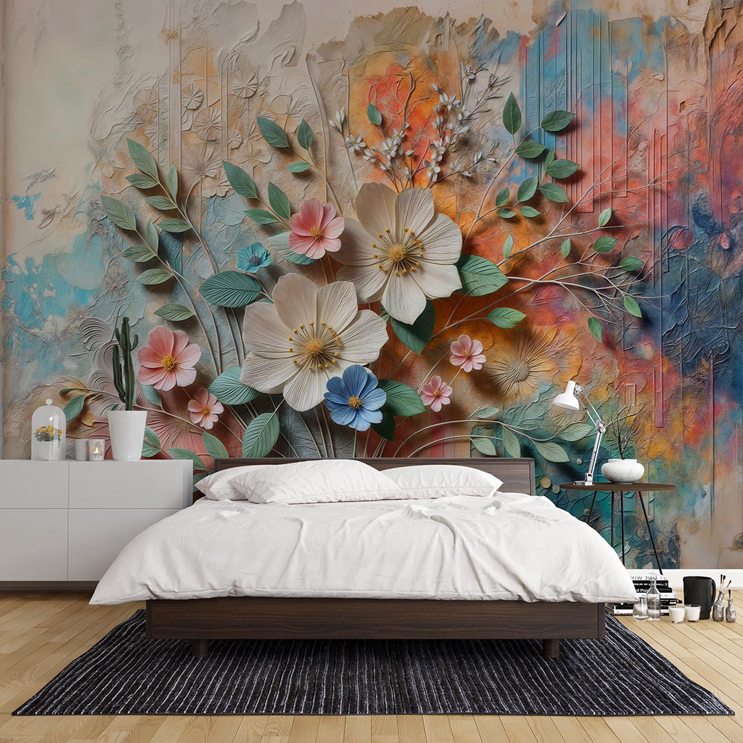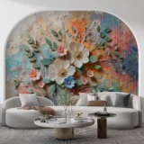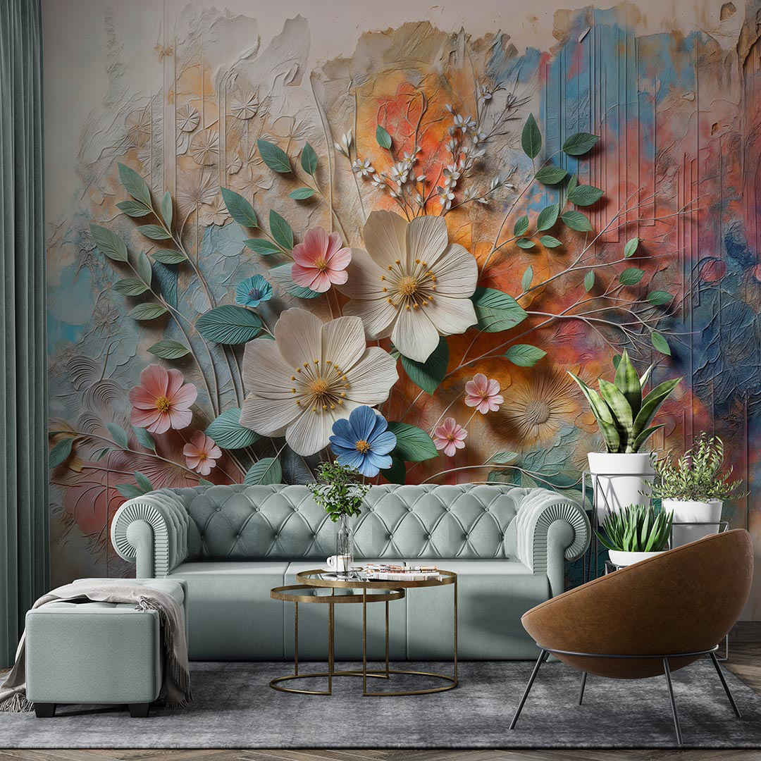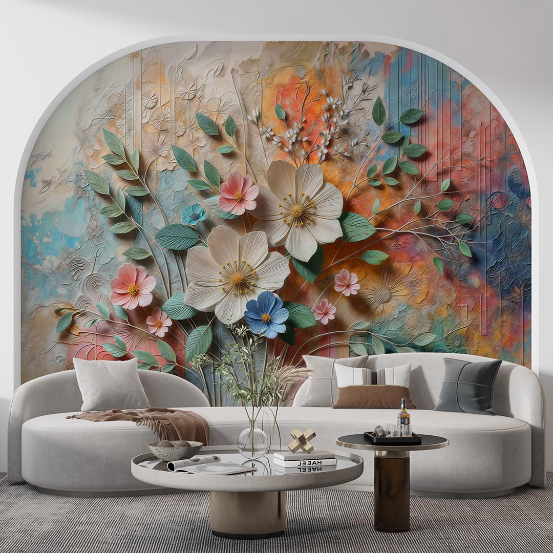 Bu canlı sanat eseri, doğanın enerjisini ve güzelliğini yansıtan kabartmalı bir çiçek bahçesini sunuyor. Her bir çiçek, canlı renkleri ve dokularıyla adeta bir dansı andırırken, kabartmalı detaylar tasarıma derinlik ve boyut katıyor. Bu eser, mekanlara canlılık ve enerji getirirken, doğanın coşkusunu ve renklerin uyumunu bir araya getiriyor.