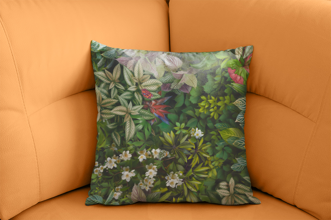 Bu tasarım, tropikal yaprakların canlı renklerini ve zengin dokularını bir araya getirerek doğanın enerjisini ve dinamizmini yansıtıyor. Yaprakların hareketli kompozisyonu ve canlı renkleri, mekanlara tropikal bir esinti ve ferahlık katıyor. Bu eser, doğanın canlılığını ve enerjisini iç mekanlara taşıyarak izleyicilere ilham veriyor.