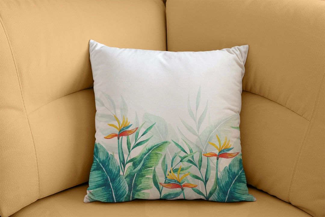 • Kırlent: Koltuk veya yatakta kullanıldığında, tropik çiçeklerin canlı desenlerini yaşam alanınıza taşır. Dekorasyona hem zarafet hem de konfor katar.