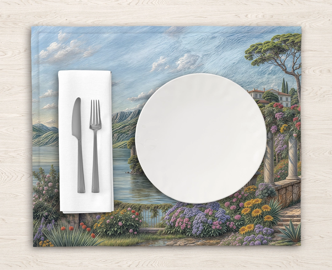 Bu tasarım, İtalya’nın Como Gölü’nün büyüleyici ve renkli kıyılarının, fırça darbeleriyle gözler önüne seriyor. Göl kenarındaki yemyeşil yamaçlara kurulmuş tarihi villalar ve rengarenk çiçek açmış bahçeler, manzaraya derinlik ve romantik bir dokunuş katıyor. Uzaktaki dağların heybetli silüeti ve gölün dingin suları, doğanın ve mimarinin eşsiz birleşimini vurguluyor. Her fırça darbesi, çiçeklerin narin dokusunu, binaların detaylarını ve suyun hafif dalgalanmasını vurgularken, yeşilin, pembenin, morun ve mavinin zengin tonları, bu sahnenin huzurunu ve büyüsünü hissettiriyor. İzleyicide bir hayranlık, sakinlik ve keşfetme arzusu uyandırırken, aynı zamanda kaybolmuş bir cennetin veya rüyanın parçası olma hissini veriyor. Bu görsel, ruhu dinlendiren, hayal gücünü harekete geçiren ve sizi Como Gölü’nün büyülü atmosferine davet eden bir kapı aralıyor.