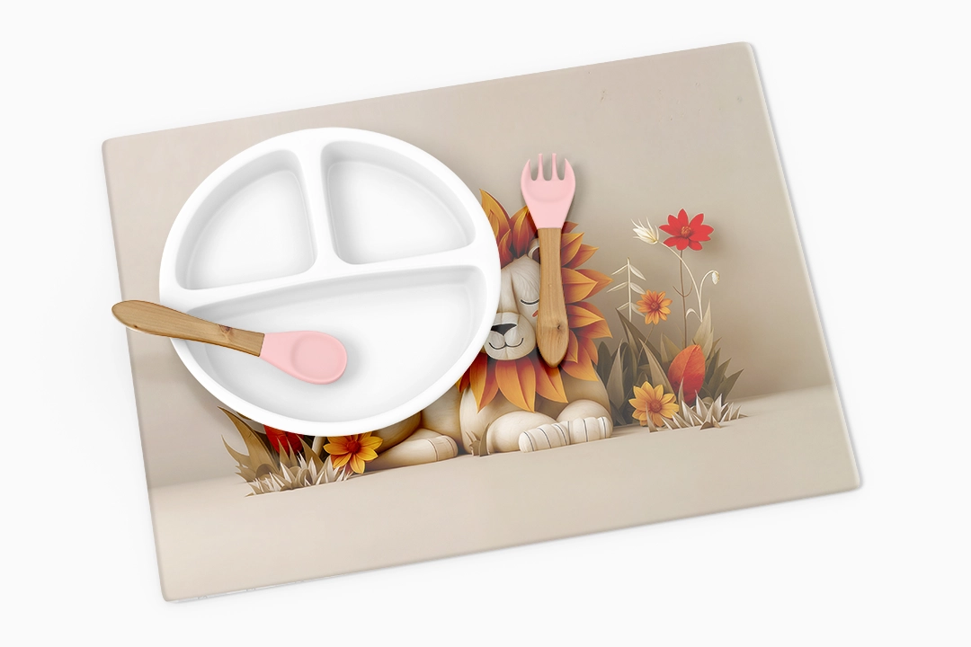Bu büyüleyici tasarım, çiçeklerle dolu bir bahçede huzurla uyuyan bir aslanı betimliyor. Aslanın sakin ifadesi ve çiçeklerin canlı renkleri, izleyicilere huzurlu ve rüya gibi bir an sunuyor. Fırça darbeleri, aslanın yumuşak tüylerini ve çiçeklerin narin yapraklarını vurgularken, renkler ortama sıcaklık ve huzur katıyor. Bu eser, doğanın huzurlu güzelliğini ve bir aslanın rüyasını bir araya getirerek izleyicilere dinginlik dolu bir deneyim yaşatıyor.