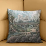 Bu tasarım, Como Gölü’nün sakin ve romantik atmosferini, fırça darbeleriyle büyüleyici bir şekilde yansıtıyor. Neoklasik tarzda bir köprü, gölün dingin suları üzerinde zarifçe yükselirken, çevresindeki yemyeşil ağaçlar ve bitki örtüsü, manzaraya derinlik ve huzur katıyor. Her fırça darbesi, suyun hafif dalgalanmasını, ağaçların detaylarını ve gökyüzünün bulutlu dinginliğini vurgularken, yeşilin, mavinin ve kahverenginin zengin tonları, bu sahnenin romantik ve sakinleştirici etkisini hissettiriyor. İzleyicide bir hayranlık, dinginlik ve huzur arzusu uyandırırken, aynı zamanda doğanın ve mimarinin uyumlu birlikteliğine tanık olma hissini veriyor. Bu görsel, ruhu dinlendiren, hayal gücünü harekete geçiren ve sizi Como Gölü’nün büyülü atmosferine davet eden bir kapı aralıyor.