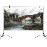 Bu tasarım, zamanın yıpratıcı etkisine rağmen ayakta kalmış, kadim bir taş köprünün büyüleyici ve melankolik atmosferini fırça darbeleriyle gözler önüne seriyor. Akan suların dinginliği, köprünün kemerlerinin altından geçerken geçmişin fısıltılarını taşıyor. Arka plandaki görkemli dağlar ve hafif bulutlu gökyüzü, manzaraya derinlik ve sonsuzluk katıyor. Her fırça darbesi, taşın yıpranmış dokusunu, suyun hareketini ve gökyüzünün dramatik bulutlarını vurgularken, kahverenginin, grinin, yeşilin ve mavinin zengin tonları, bu sahnenin dinginliğini ve gizemini hissettiriyor. İzleyicide bir hayranlık, hüzün ve keşfetme arzusu uyandırırken, aynı zamanda tarihin ve doğanın gücüne tanık olma hissini veriyor. Bu görsel, ruhu dinlendiren, hayal gücünü harekete geçiren ve sizi zamansız bir yolculuğa davet eden bir kapı aralıyor.